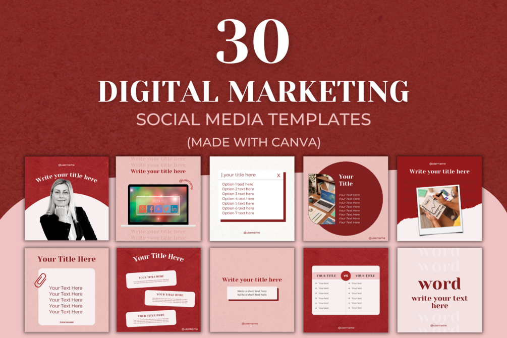 The Digital Marketing Social Media Templates are ideal for Instagram Posts, Twitter Posts, Facebook Posts, Pinterest Pins, and LinkedIn posts.