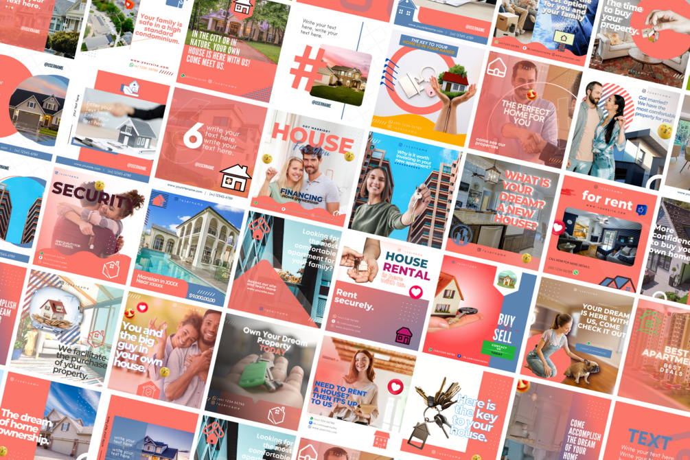 36 professionally designed Real Estate Social Media posts for independent realtors, real estate agencies, Airbnb managers, real estate property managers, and Digital marketers to attract new leads, grow followers, make a success of those open houses, and close on deals.