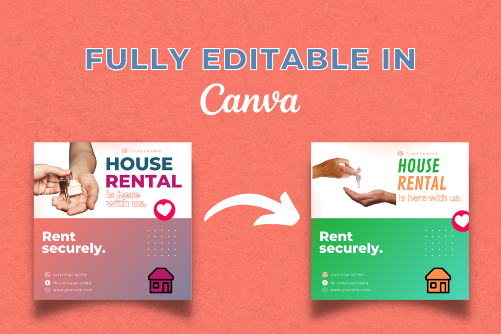 These ready-to-customize templates can be edited in the Free Version of Canva. Each element inside the Real Estate Canva template bundle is free for you to use. There is no need to upgrade to a pro version to be able to use the template.