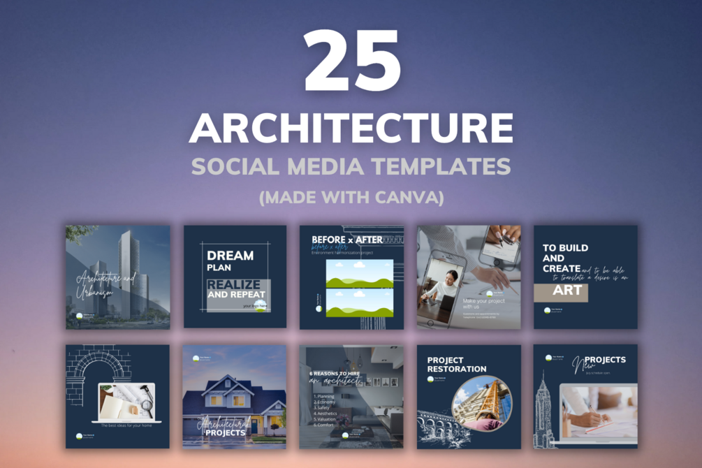 25 professionally designed Architecture Social Media posts for independent Architects, Architectural firms, and Digital marketers to attract new leads, grow followers, and close deals.