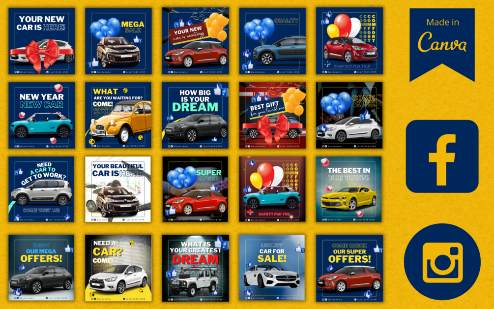 20 professionally designed Car Dealer Social Media posts for Car Dealers