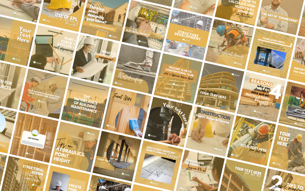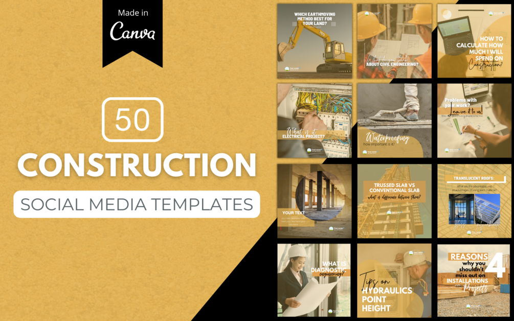 50 professionally designed Construction Social Media posts for Construction companies and Digital Marketers to attract new leads, grow followers, and increase brand awareness.