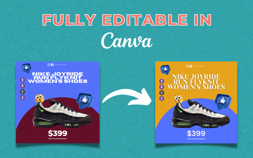 These ready-to-customize templates can be edited in the Free Version of Canva. Each element inside the Footwear Store Canva template Bundle is free for you to use. There is no need to upgrade to a pro version to use the template.