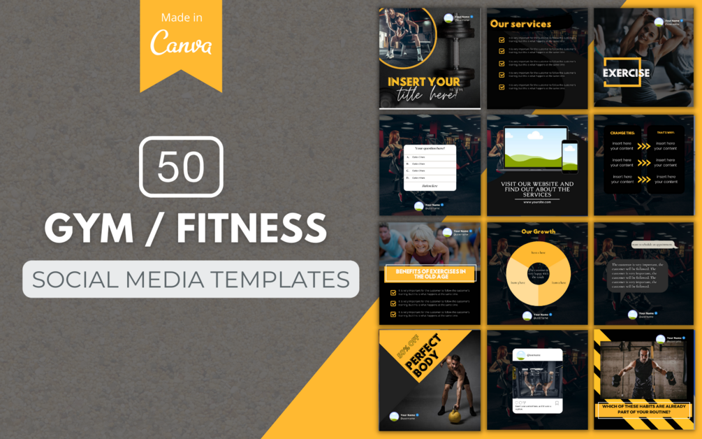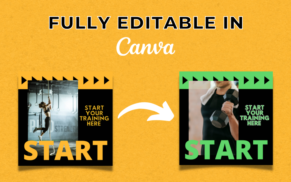 These ready-to-customize templates can be edited in the Free Version of Canva. Each element inside the Gym Canva template Bundle is free for you to use. There is no need to upgrade to a pro version to use the template.
