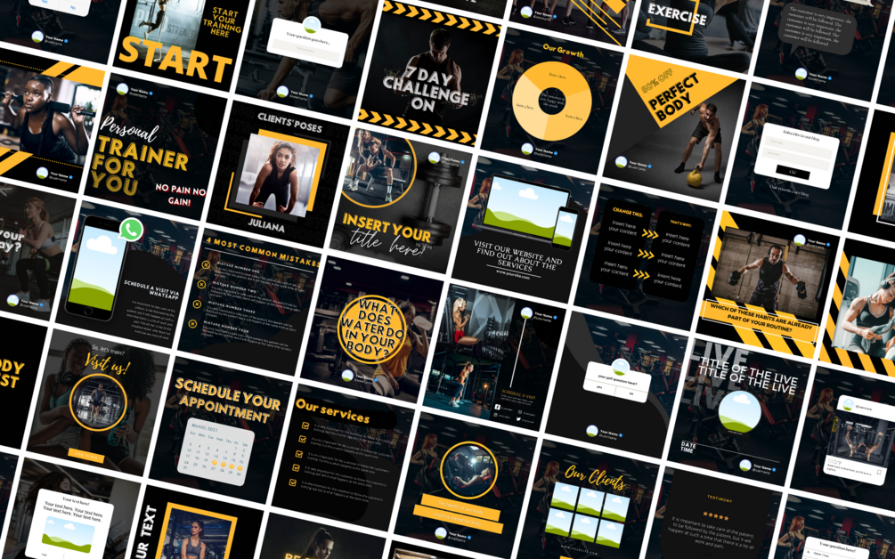 50 professionally designed Gym Social Media posts for Gym Owners, Fitness Centres, Gym Trainers, Personal Trainers, Fitness Coaches, and Digital Marketers to attract new leads, grow followers, and close deals.