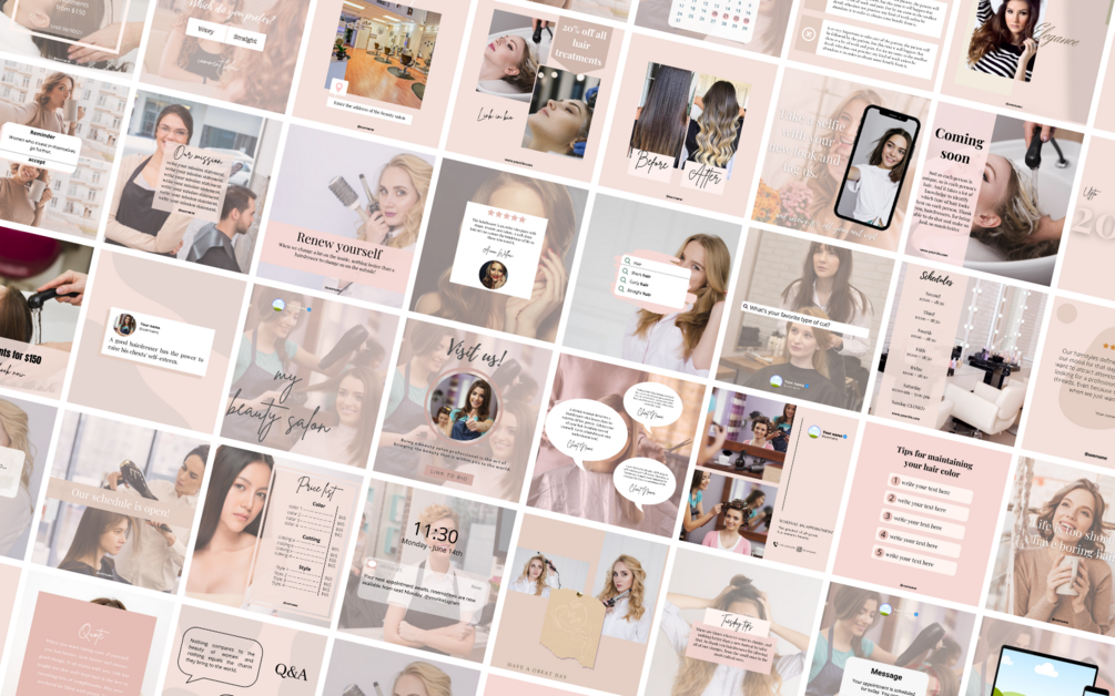 50 professionally designed Hairdresser Social Media posts for Hairdressers, Hair Stylists, Hair Salon Owners, Beauty Salons, and Digital Marketers to attract new leads, grow followers, and close deals.