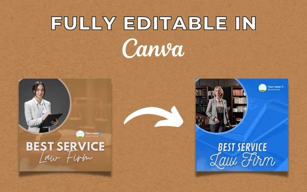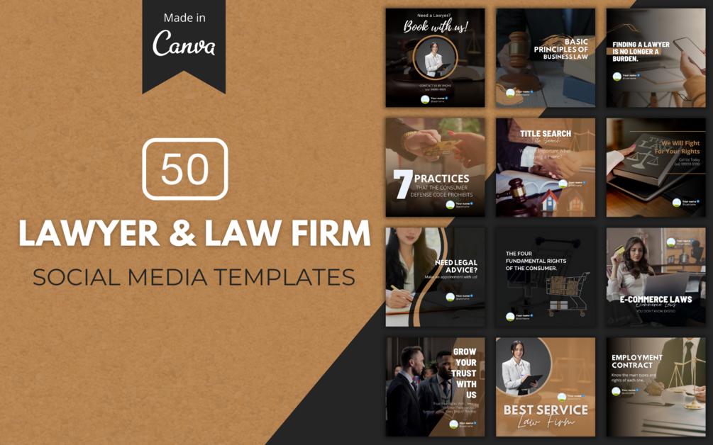 Law Firm Social Media Templates are ideal for Instagram Posts, Twitter Posts, Facebook Posts, Pinterest Pins, and LinkedIn posts.