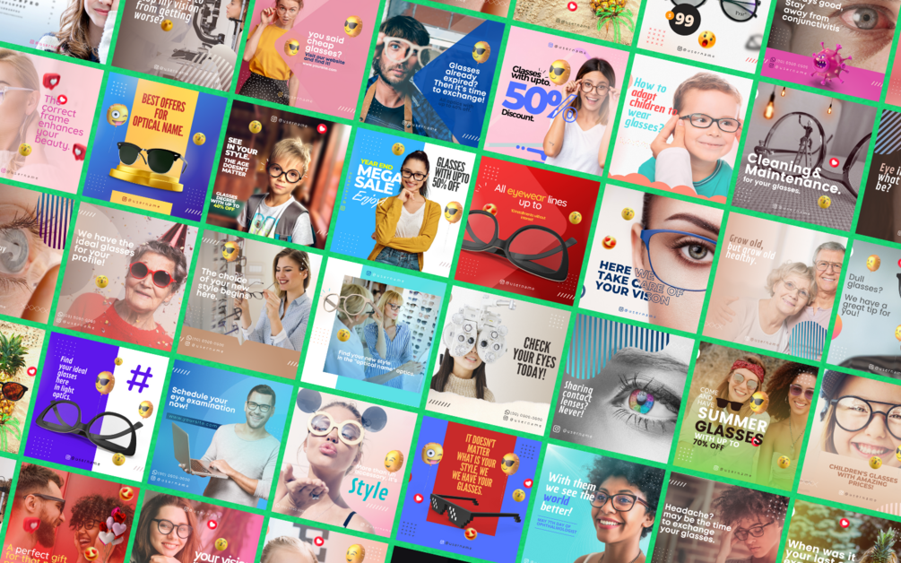 44 professionally designed Optometrist Social Media posts for Optometrists, and Digital Marketers to attract new leads, grow followers, and close deals.
