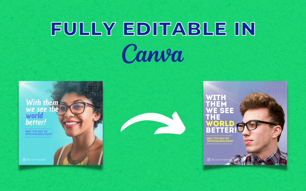 These ready-to-customize templates can be edited in the Free Version of Canva. Each element inside the Optometrist Canva template Bundle is free for you to use. There is no need to upgrade to a pro version to use the template.