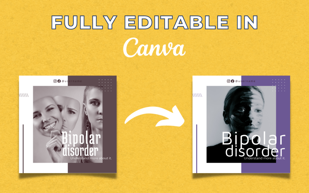 Psychiatrist Social Media Templates are ideal for Instagram Posts, Twitter Posts, Facebook Posts, Pinterest Pins, and LinkedIn posts.