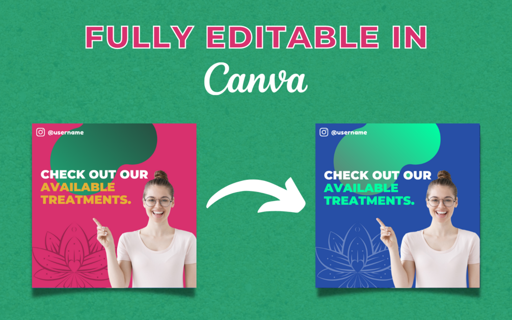 These ready-to-customize templates can be edited in the Free Version of Canva. Each element inside the Spa Canva template Bundle is free for you to use. There is no need to upgrade to a pro version to use the template.