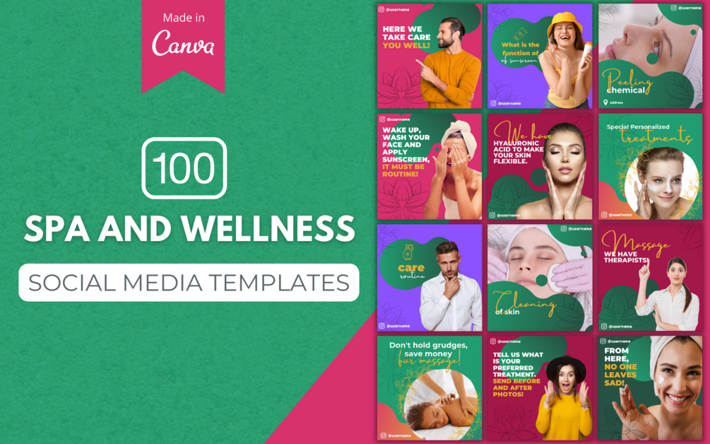 100 Professionally Designed Canva Templates For Spa and Wellness Centers.