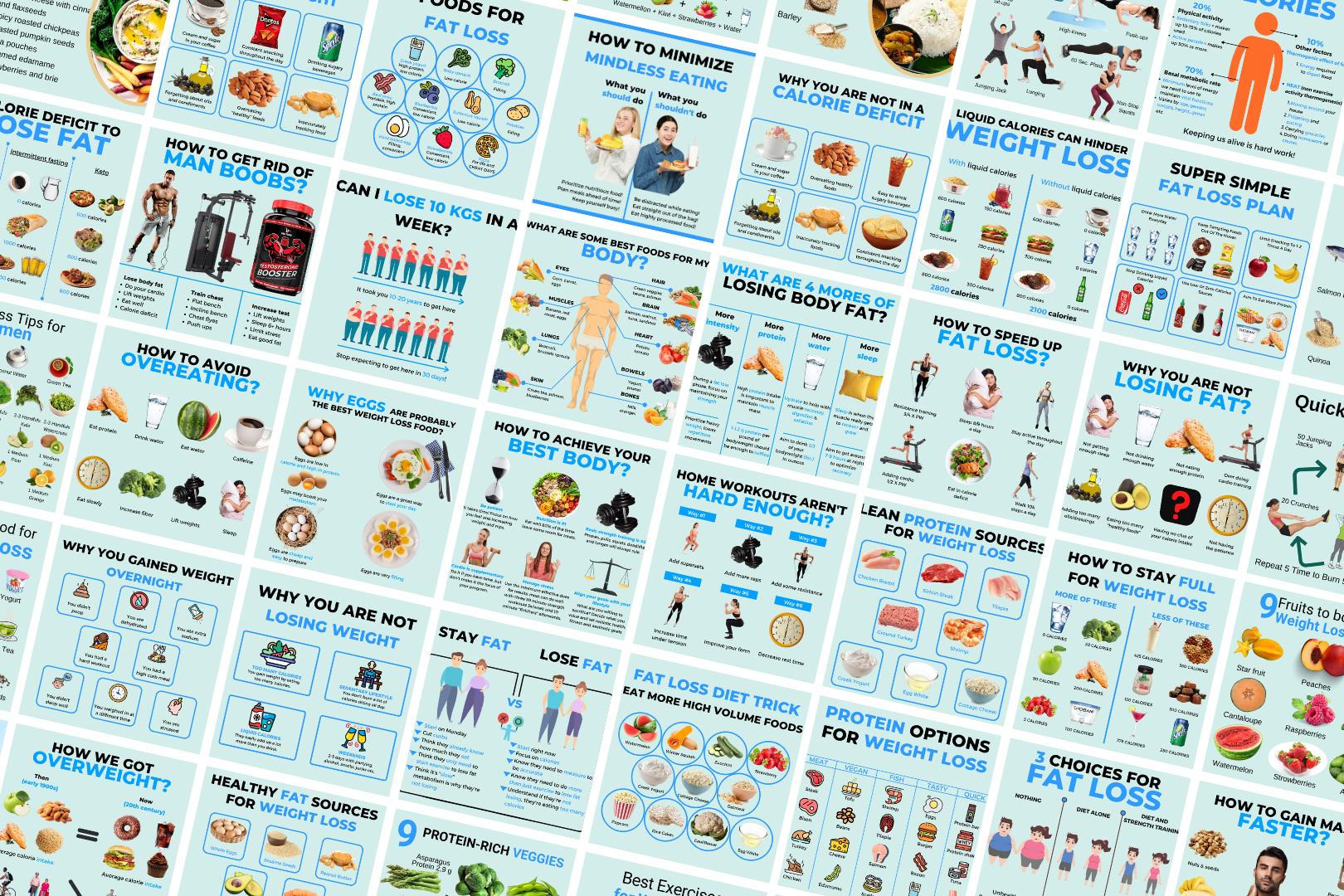 - Quantity: 200 unique infographic designs covering all weight loss topics